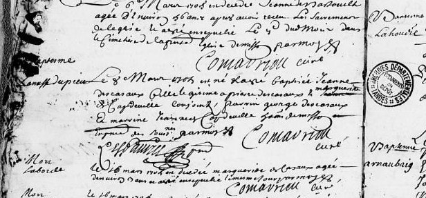 Birth 25 April 1749 -- Pomarez, Landes, Aquitaine, France