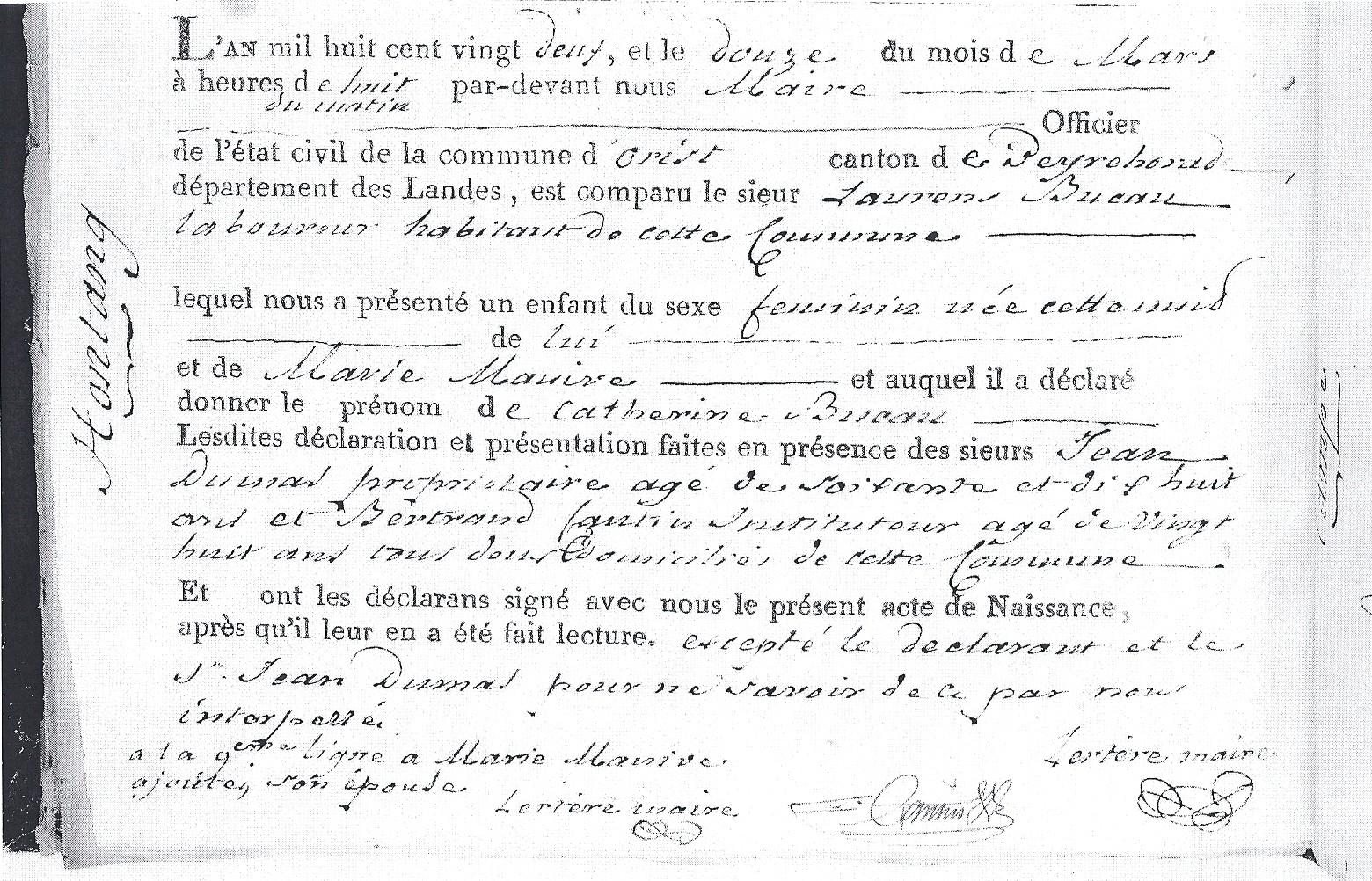 | Birth | 9 April 1817 - 7h 30 31 orist, Landes, Aquitaine, france