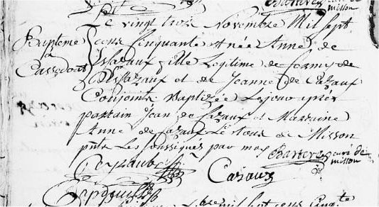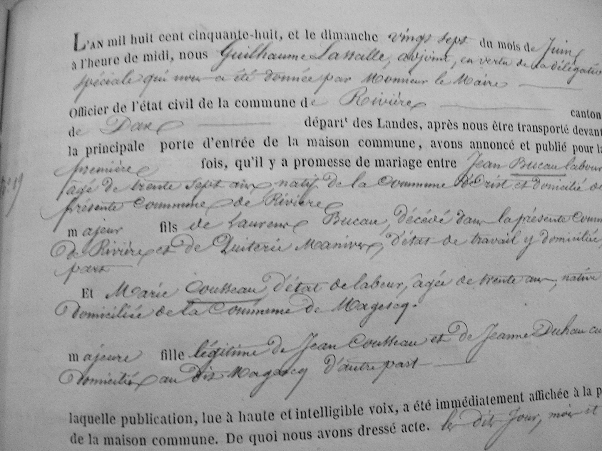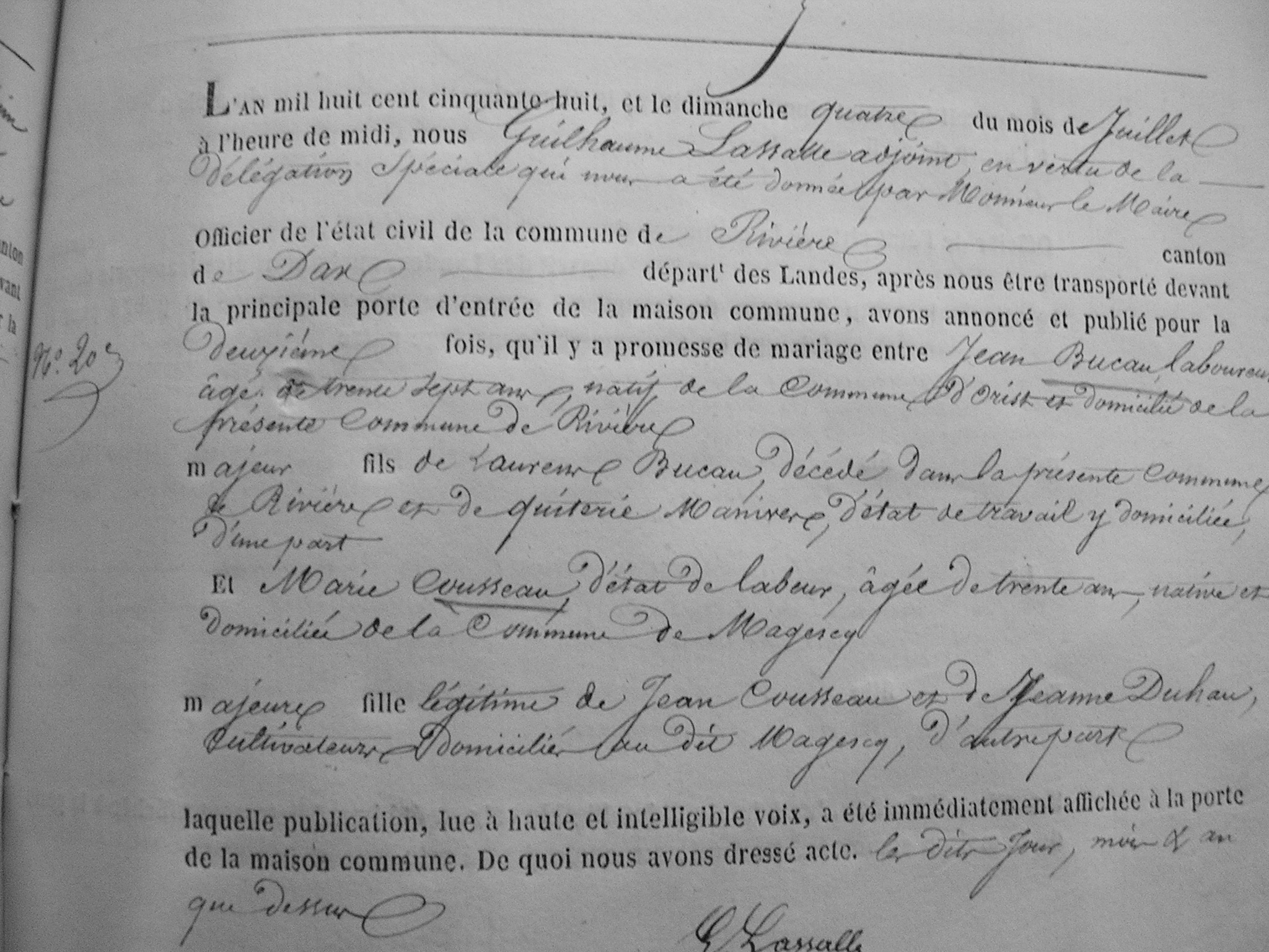 1ere Promesse de Mariage de Jean Bucau et de Marie Cousseau