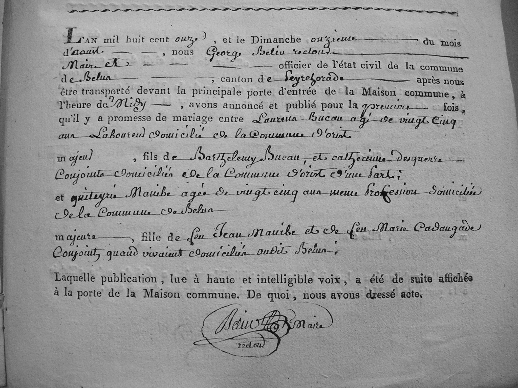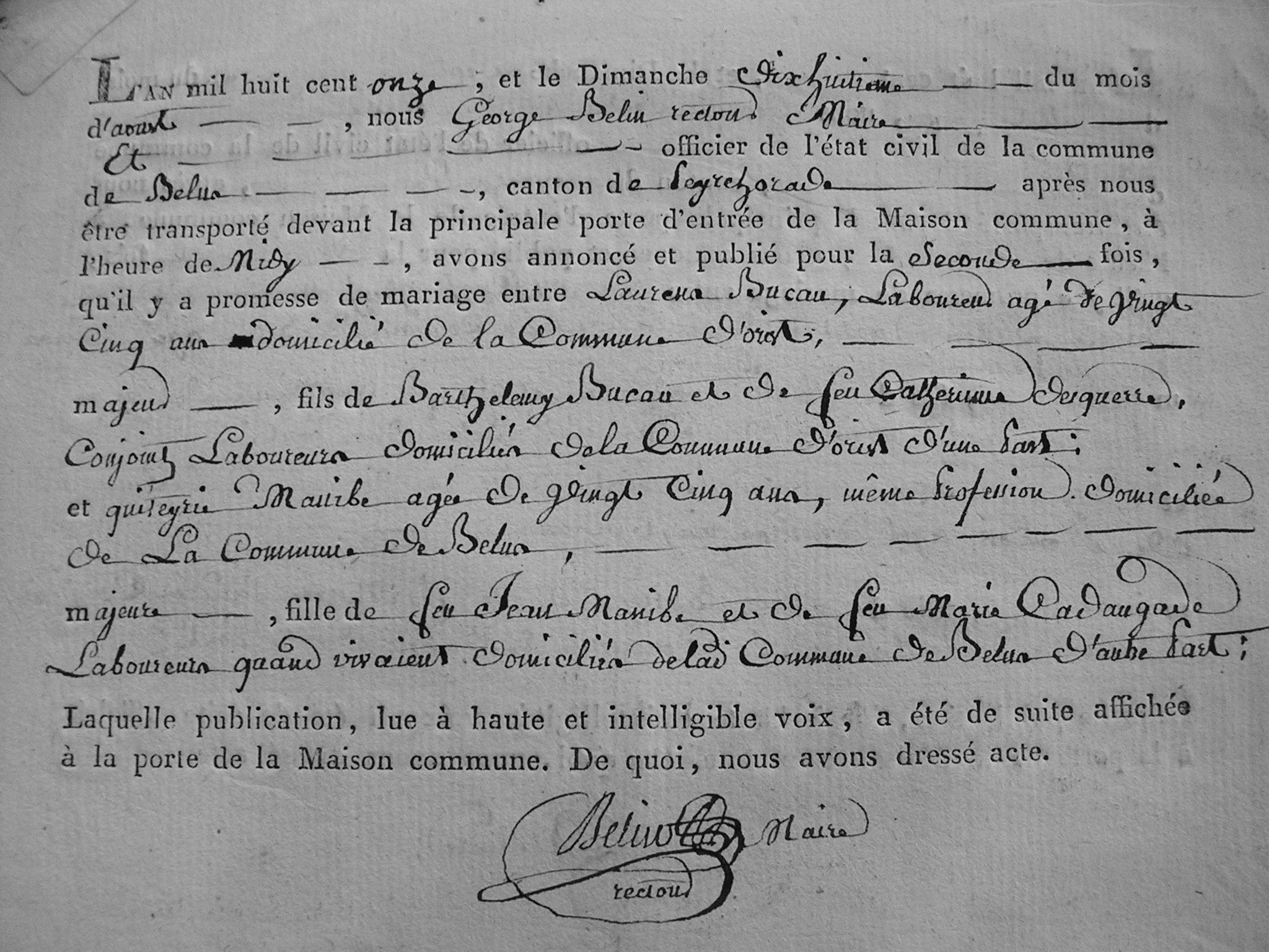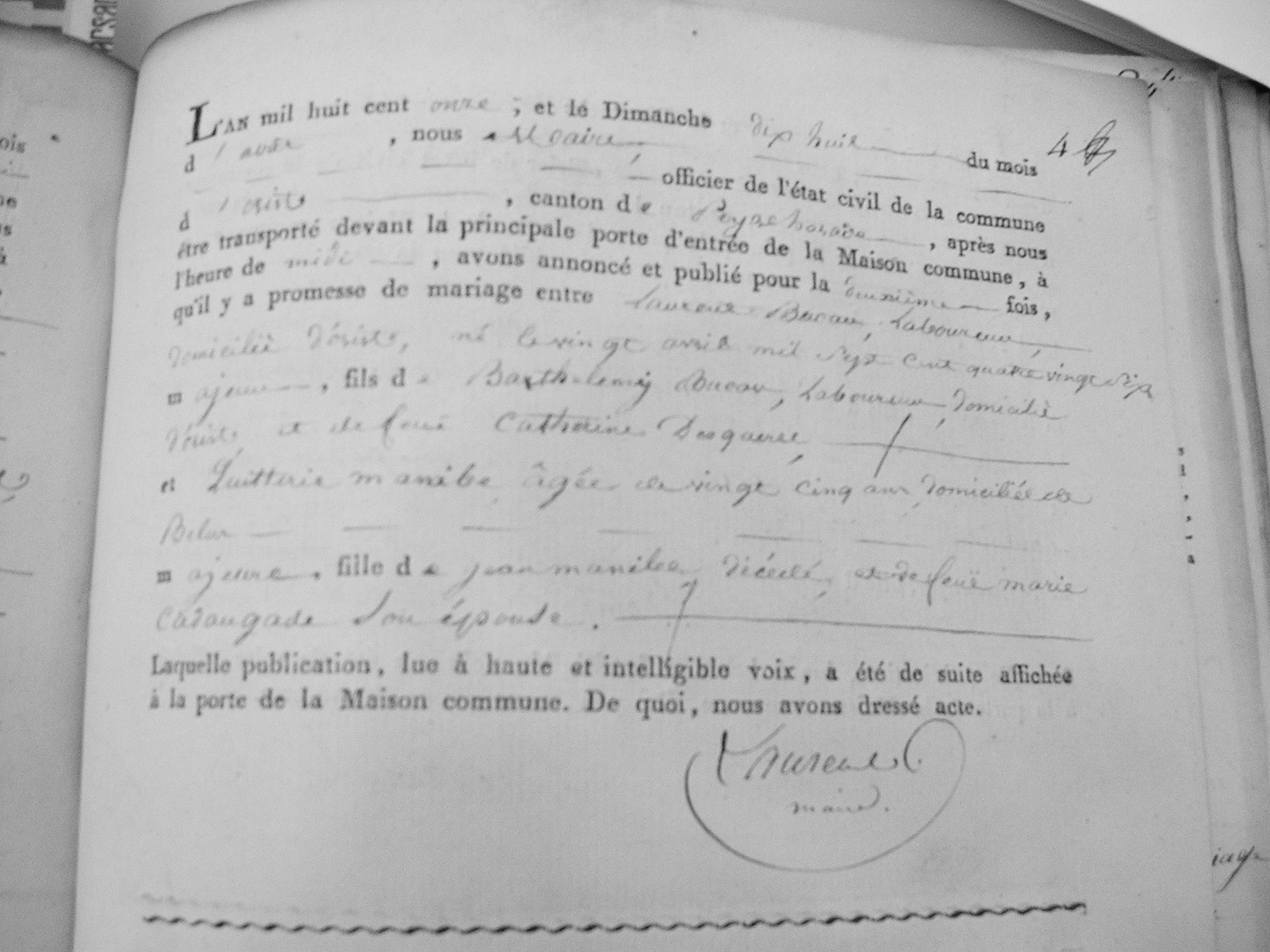 1ere promesse de mariage de Arnaud Descazaux et de Marguerite Barere